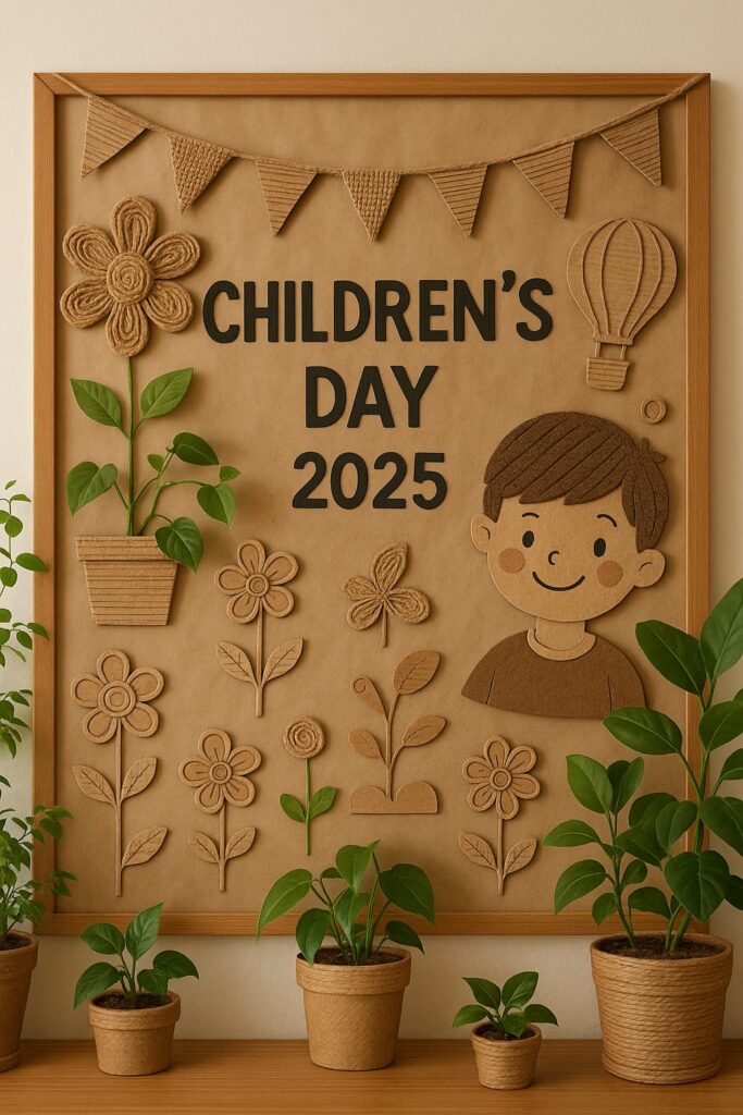 आजकल बच्चों को पर्यावरण के प्रति जागरूक बनाना भी ज़रूरी है। इस Children’s Day 2025 पर स्कूल को सजाने के लिए पेपर, जूट या पुराने कार्डबोर्ड जैसी चीज़ों का इस्तेमाल करें। इससे बच्चों को “Reuse and Recycle” का संदेश भी मिलेगा और सजावट में प्राकृतिक खूबसूरती भी झलकेगी।
