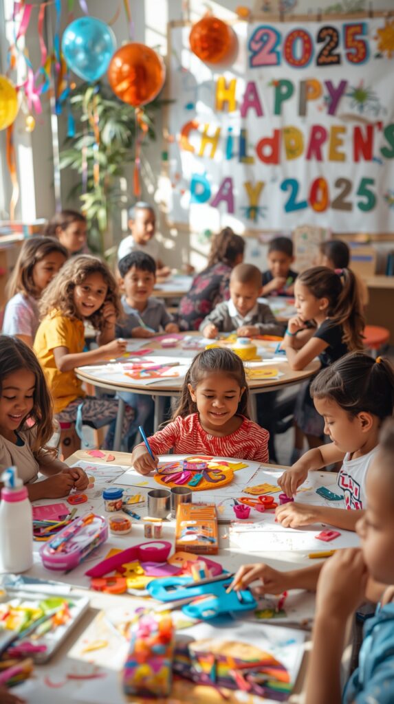 इस Children’s Day 2025 पर बच्चों से खुद सजावट करवाना एक शानदार आइडिया हो सकता है। आप “Craft Corner” बना सकते हैं जहां बच्चे अपनी बनाई पेंटिंग्स, कार्ड्स या पेपर फ्लावर लगा सकते हैं। इससे बच्चों की क्रिएटिविटी निखरती है और उन्हें खुद की बनाई चीज़ों से स्कूल सजाने में गर्व महसूस होता है।