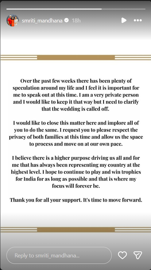 करीबी सूत्रों का दावा है कि Smriti Mandhana And Palash Muchhal दोनों फिलहाल चीज़ों को शांत रखने की कोशिश कर रहे हैं ताकि मामले को और बड़ा न बनाया जाए।