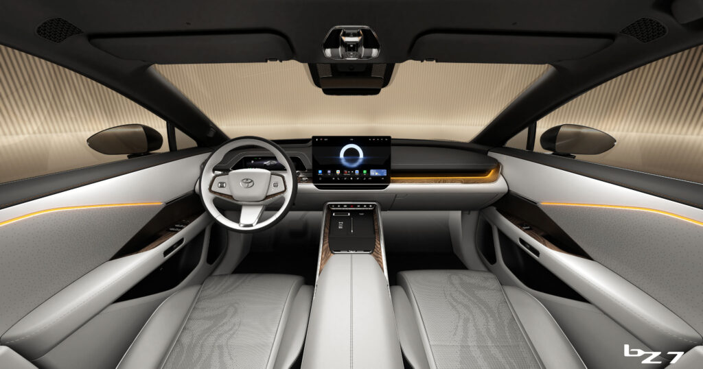 Toyota BZ7 एक बार फुल चार्ज होने पर लगभग 600 किलोमीटर तक चल सकती है।